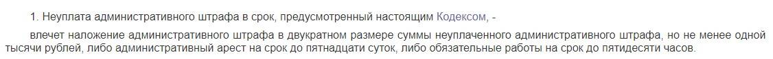 Неуплата его в предусмотренный срок регламентируется ч.1 ст.20.25 КоАП РФ: