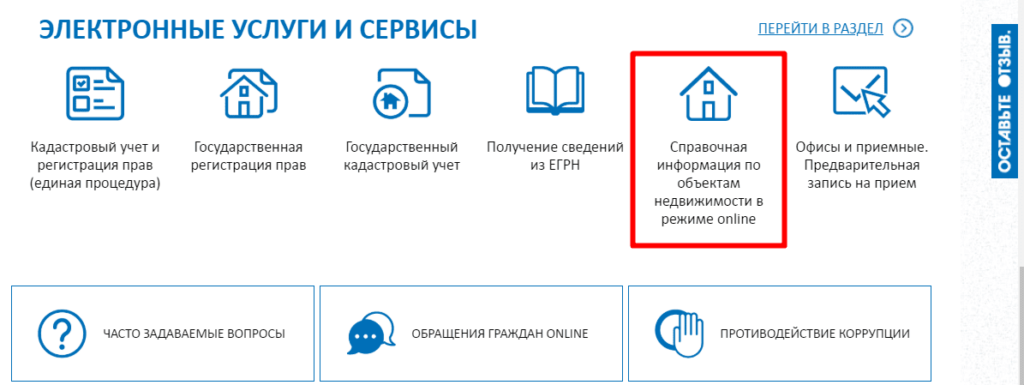 - Из списка предложенных сервисов выбрать «справочная информация по объектам недвижимости online».