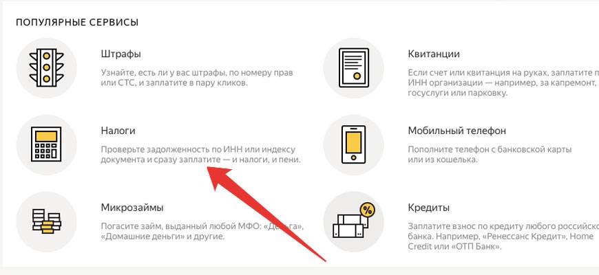 Выбрать раздел «Налоги».