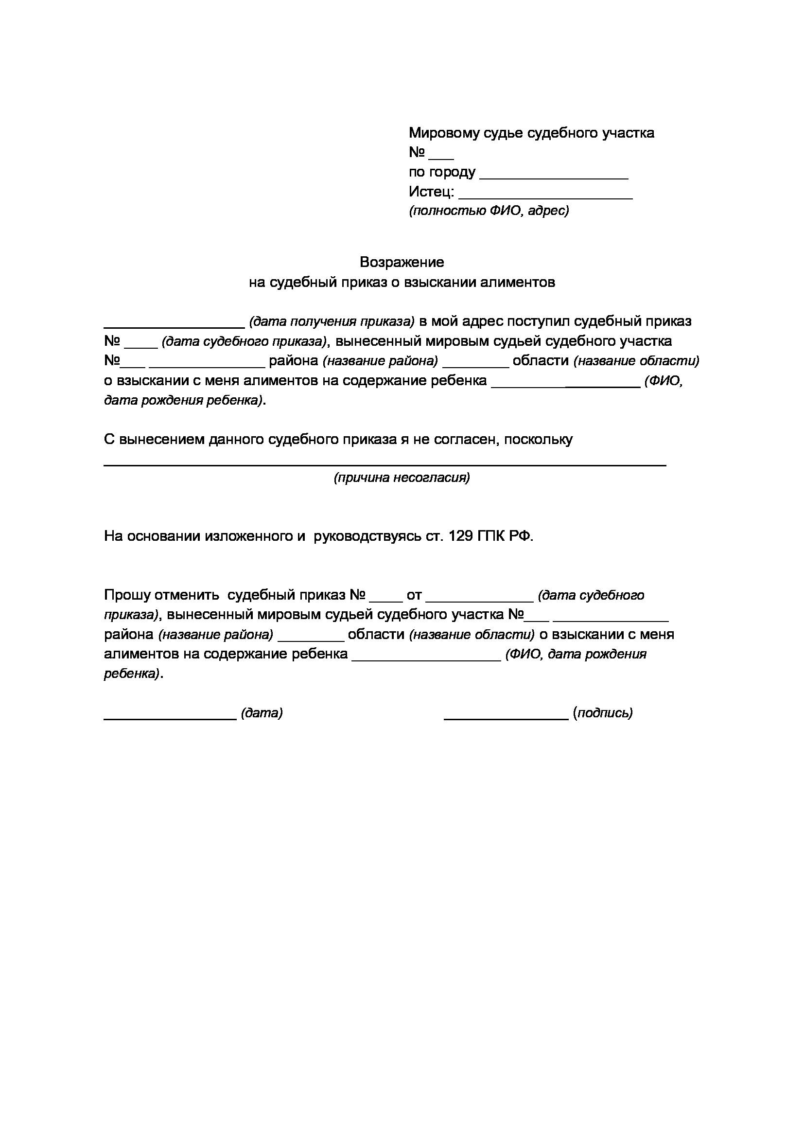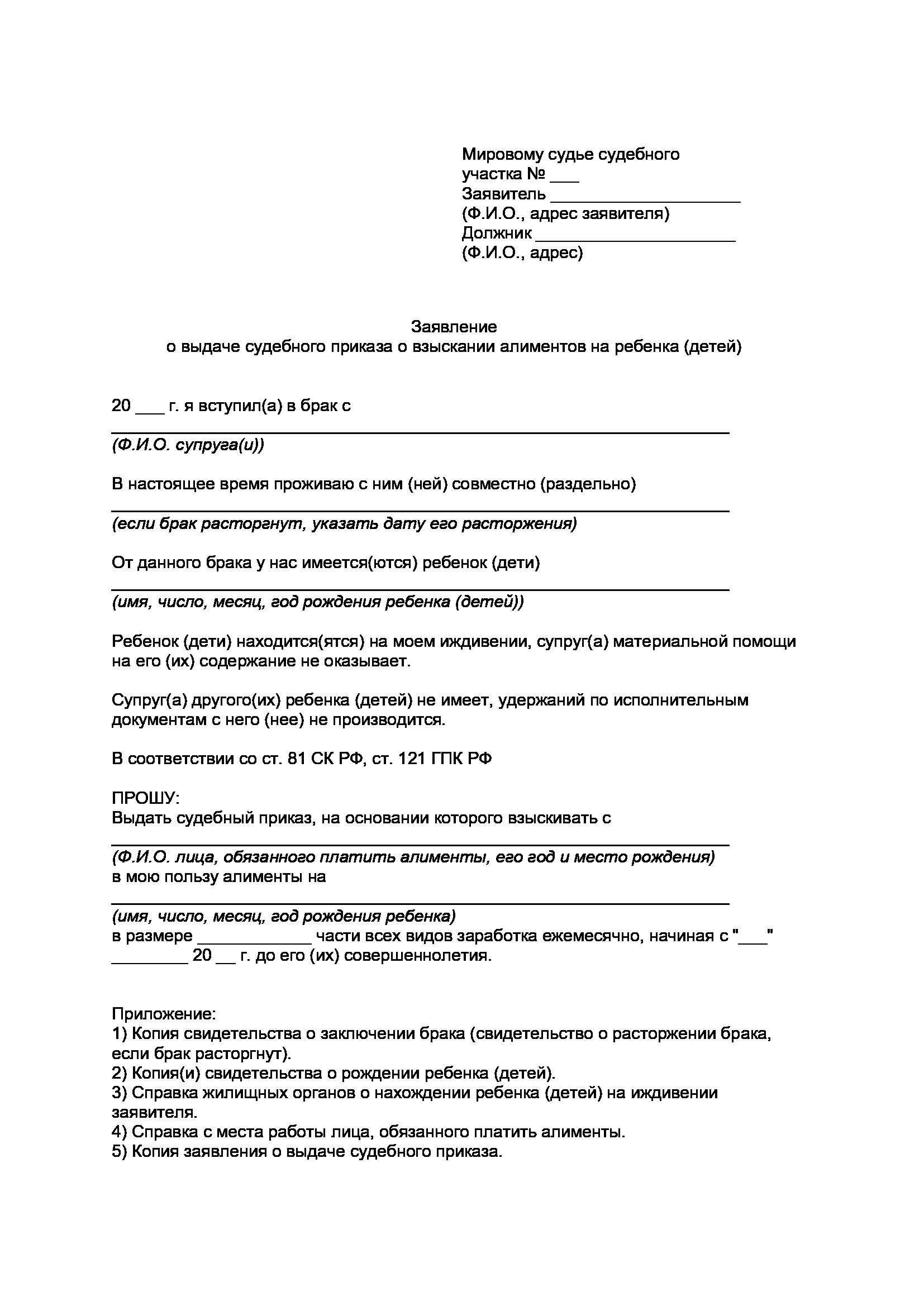 Судебный приказ для получения содержания на ребенка и супруга