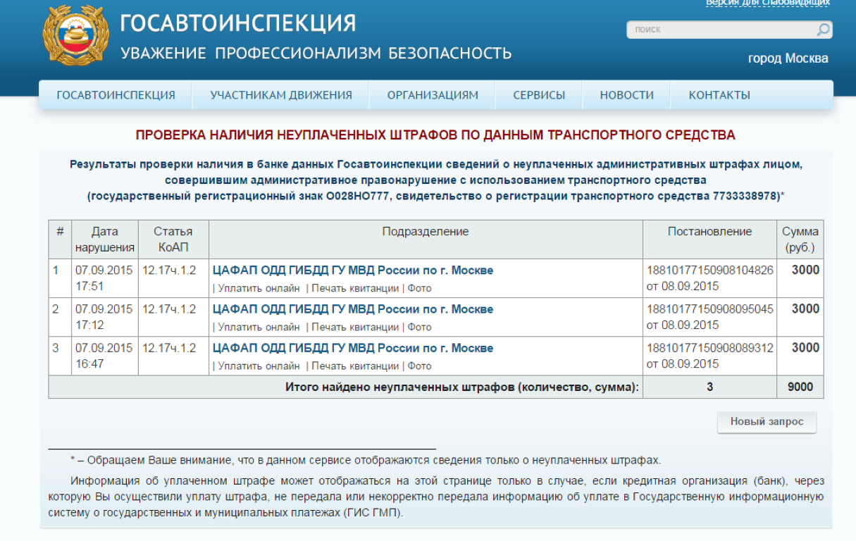 В настоящее время поисковые системы предлагают огромное количество ресурсов, в которых можно проверить свою историю штрафов, но лучше всего это делать через проверенные источники, такие как: