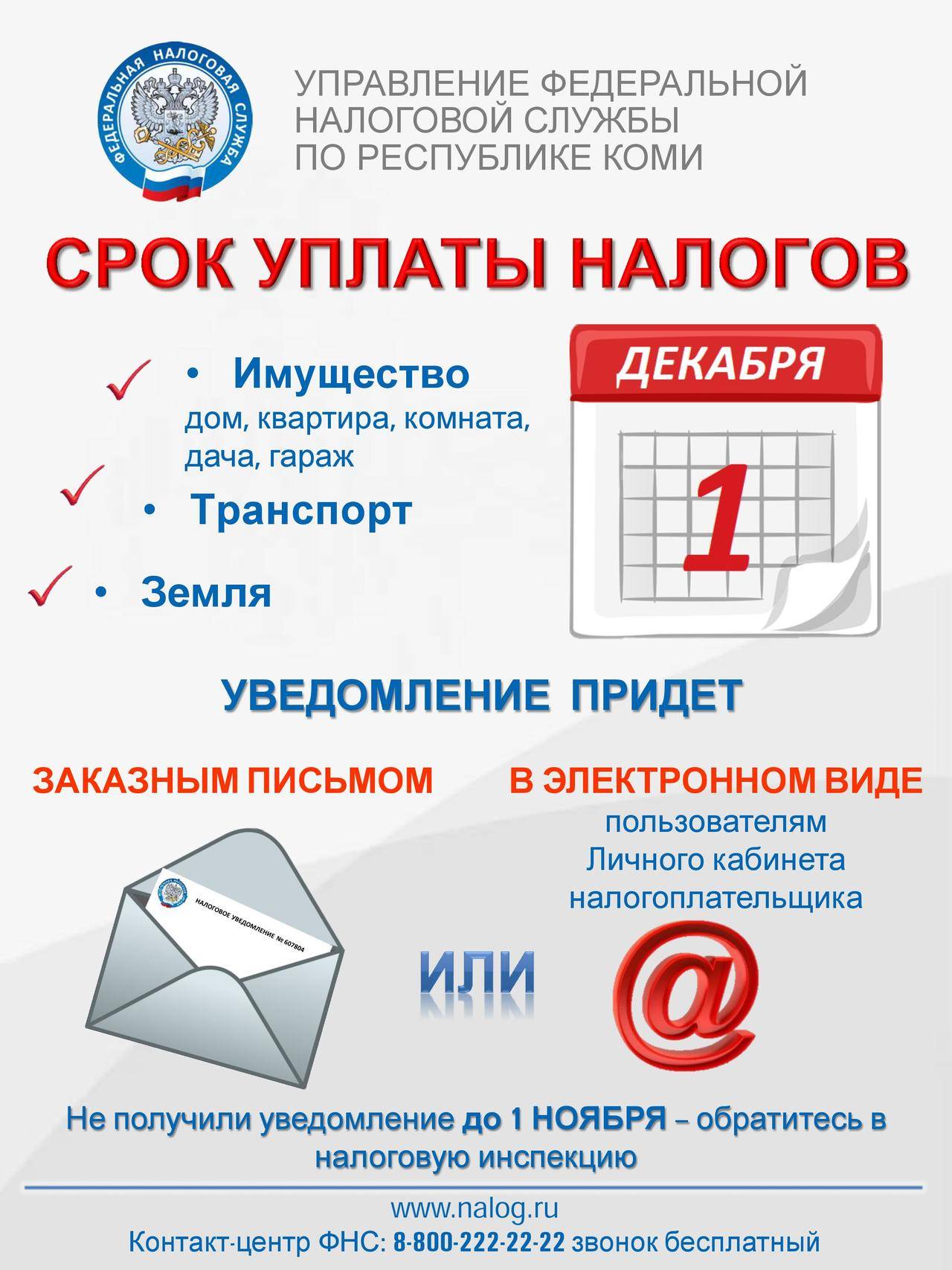 - Срок платежа. Законодательно за прошлый год уплатить нужно не позже, чем 1 декабря текущего года.