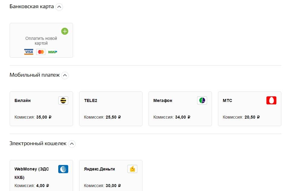 Клиенту доступно три основных способа проведения платежа. Это следующие методы: