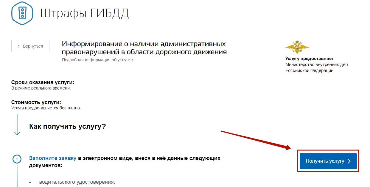Ознакомьтесь с содержимым информационной страницы – вы сможете узнать, реквизиты каких документов понадобятся, чтобы уточнить размер задолженности, какими способами удастся внести оплату. Завершив ознакомление, нажмите на кнопку «Получить услугу».