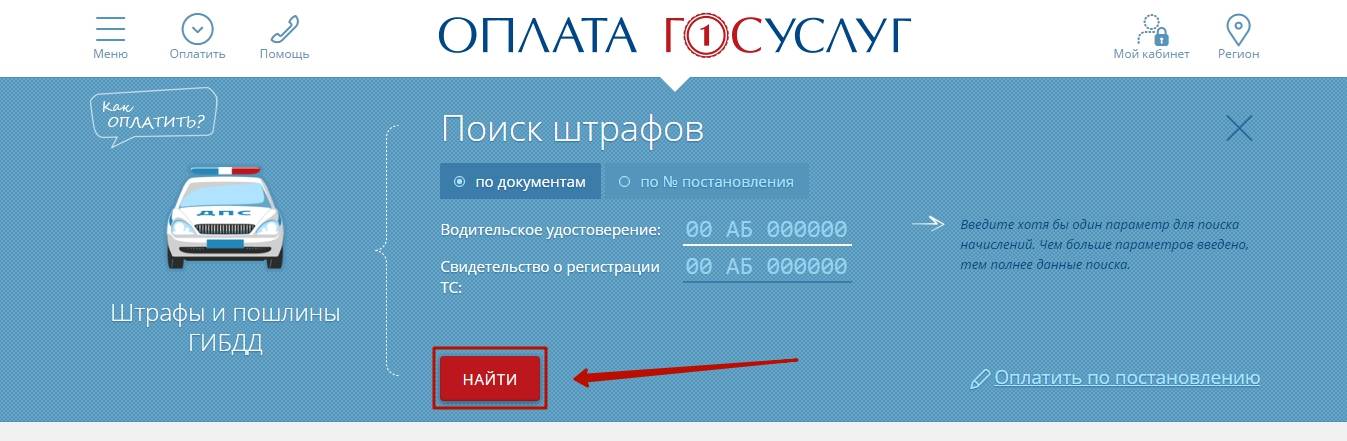 . Чтобы оплатить штраф через этот сервис, регистрацию проходить вообще не нужно. Действовать следует так.