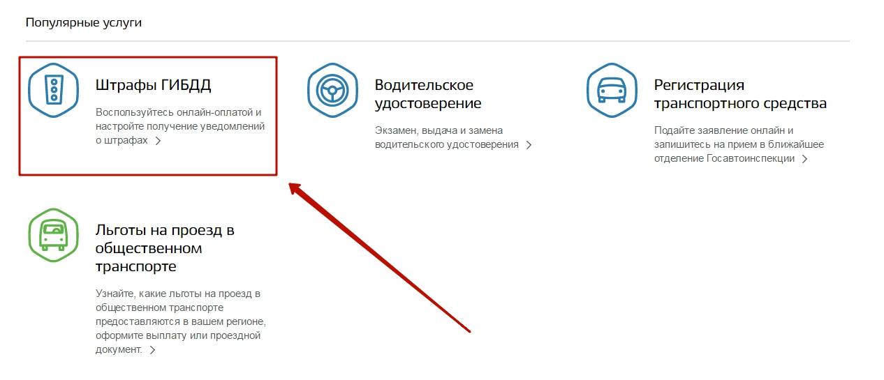 На следующей странице в блоке «Популярные услуги» выберите раздел «Штрафы ГИБДД».