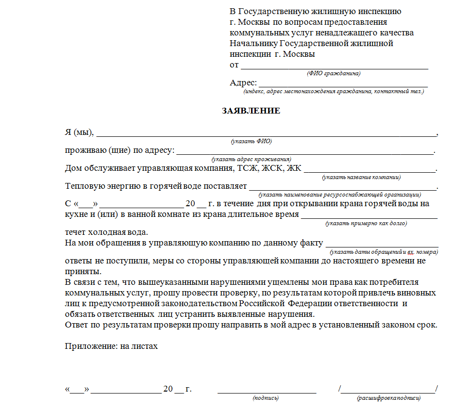 Жалоба в жилищную инспекцию на управляющую компанию: бланк