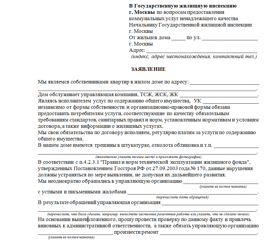 Коллективная жалоба на управляющую компанию в жилинспекцию