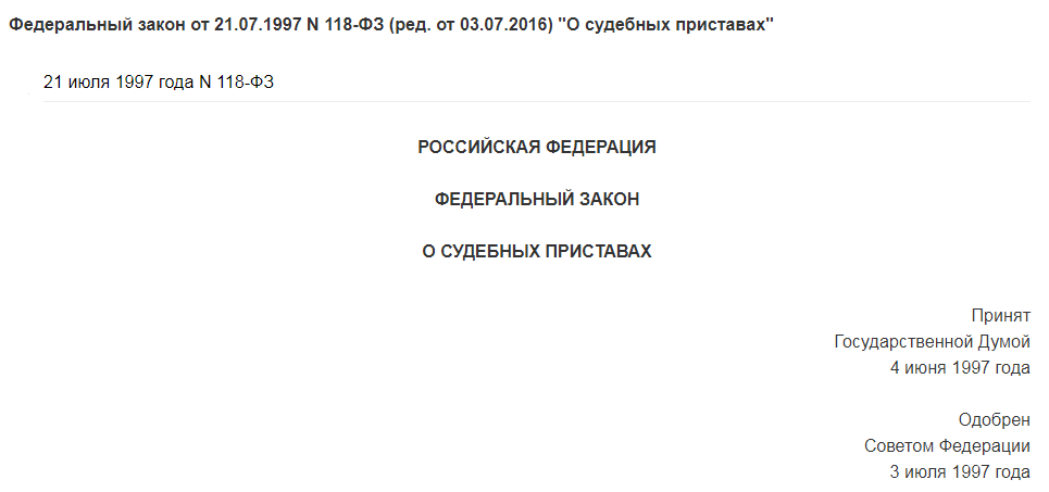 Для этого полезно ознакомиться с содержанием нормативных документов. В основном это федеральные законы, Акты Правительства, Министерства юстиции, а также правовые акты самой ФССП. Главный федеральный закон, который был принят еще в 1997 году и с тех пор претерпел большое количество редакций, – это закон №118. Он имеет соответствующее название – «О судебных приставах».