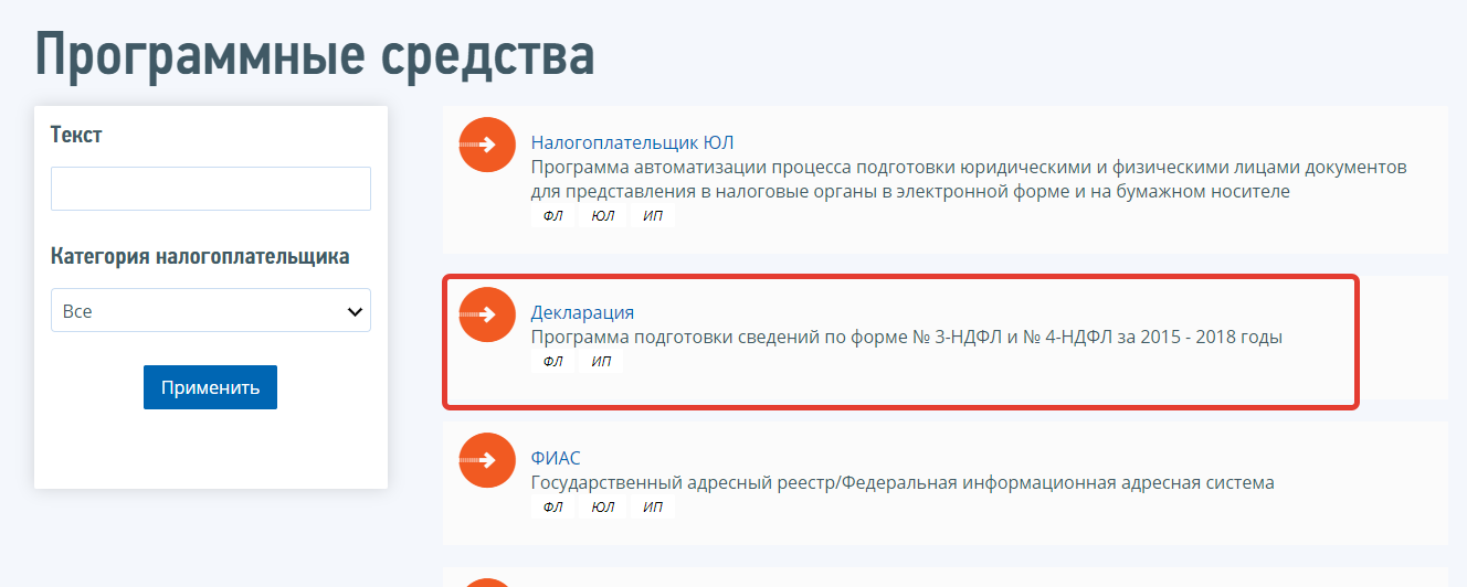 В нем содержится подраздел «Декларация».
