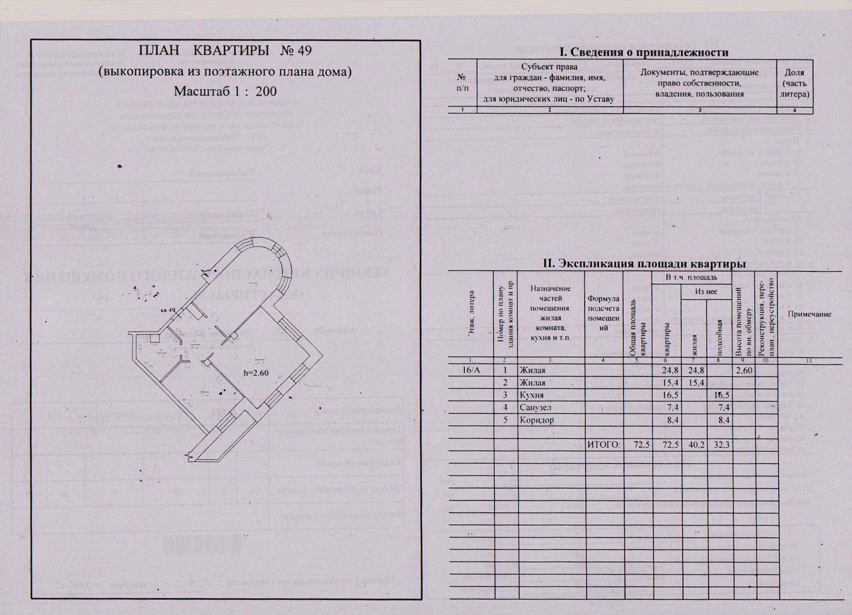 План БТИ квартиры