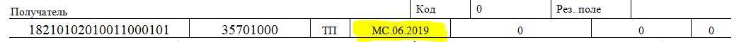 В 4-м и 5-м знаках показателя налогового периода для месячных платежей проставляется номер месяца текущего отчетного года, для квартальных платежей — номер квартала, для полугодовых — номер полугодия. Номер месяца может принимать значения от 01 до 12, номер квартала — от 01 до 04, номер полугодия — 01 или 02. В 7-10 знаках показателя налогового периода указывается год, за который производится уплата налога.
