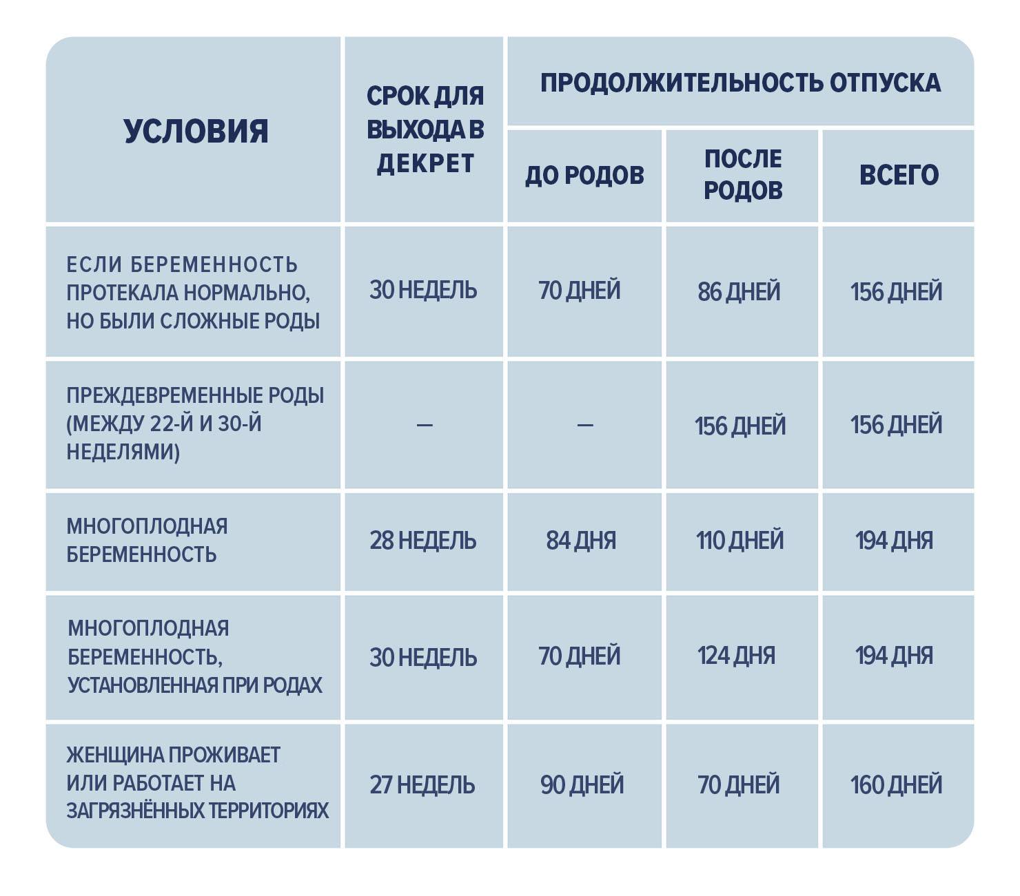 Таблица декретного отпуска