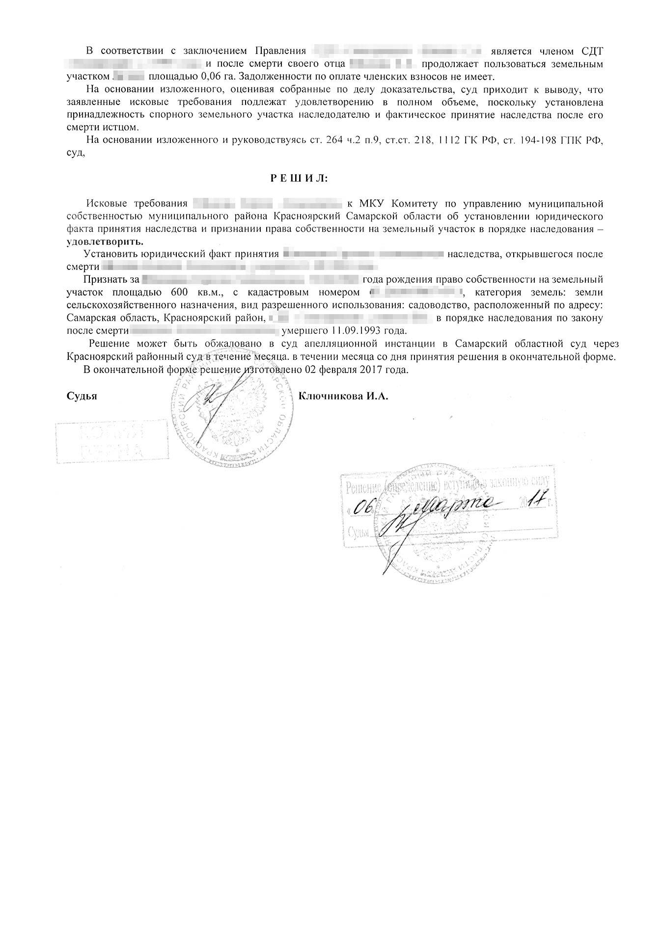 - Дождитесь окончания судебного разбирательства, получите постановление. Теперь это основание для оформления дачи во владение.