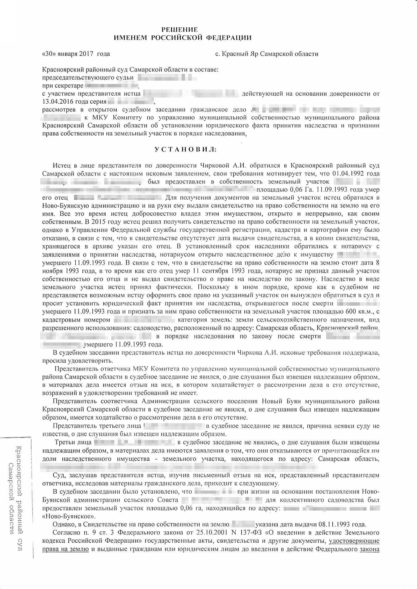 На предварительном заседании мы подали ходатайство об истребовании материалов дела у нотариуса, представили оригиналы документов, на которые ссылались в иске, чтобы суд мог удостовериться в их подлинности. Обозначили свою позицию и попросили признать право собственности Сергея на землю в порядке наследования.