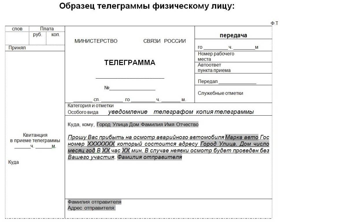 - Телеграмму, в которой виновника просят прибыть на место проведения оценки причинённого ущерба.