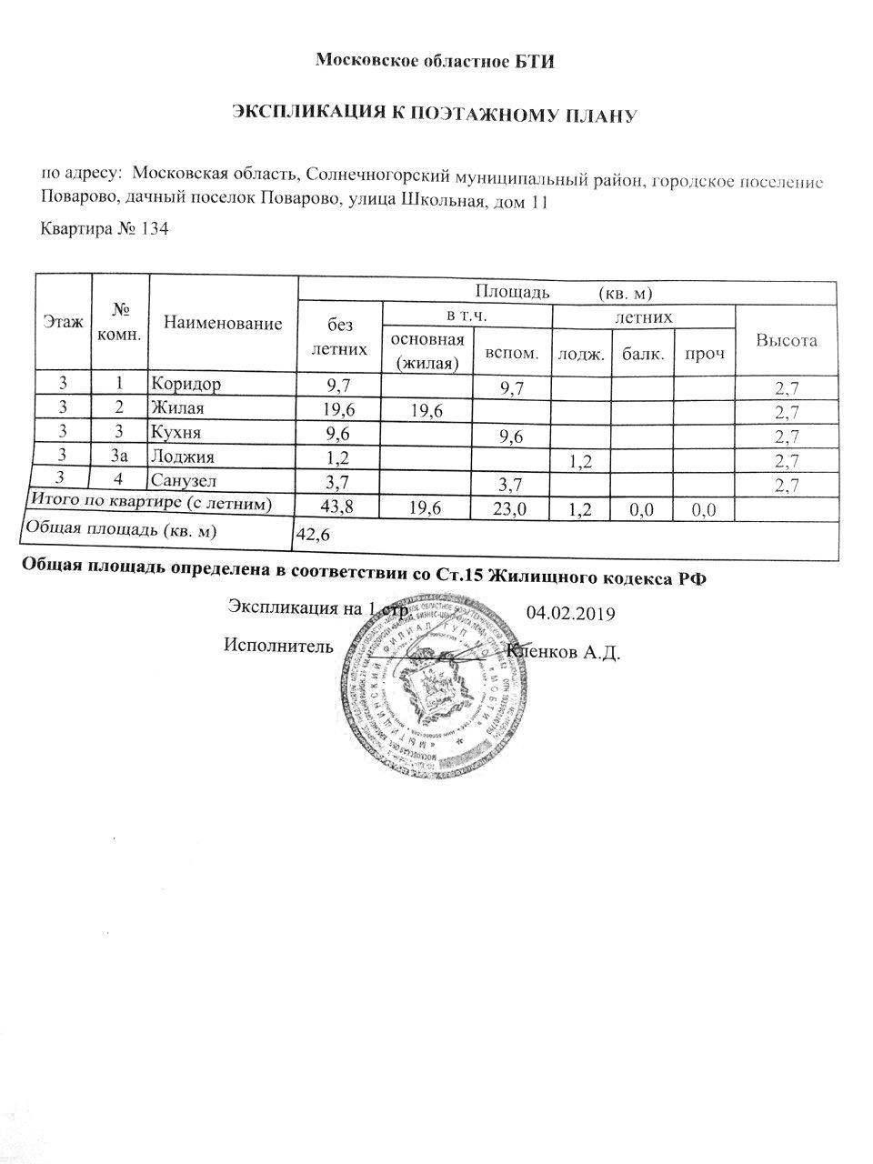 - сведения об общей, жилой площадях квартиры;