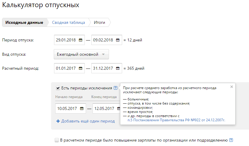 Важно! Расчёт отпускных выплат для каждого сотрудника индивидуален и в случае, если в течение его трудовой деятельности за год имеют место командировочные или больничный, они также принимаются в расчёт, исходя из количества дней, в течение которых лицо не выполняет трудовые обязанности, умноженные на иной показатель дневной выплаты (выше или ниже среднего). На многих интернет-сайтах имеется также специальный интерактивный калькулятор для расчёта рекреационных пособий, которым может воспользоваться любой желающий