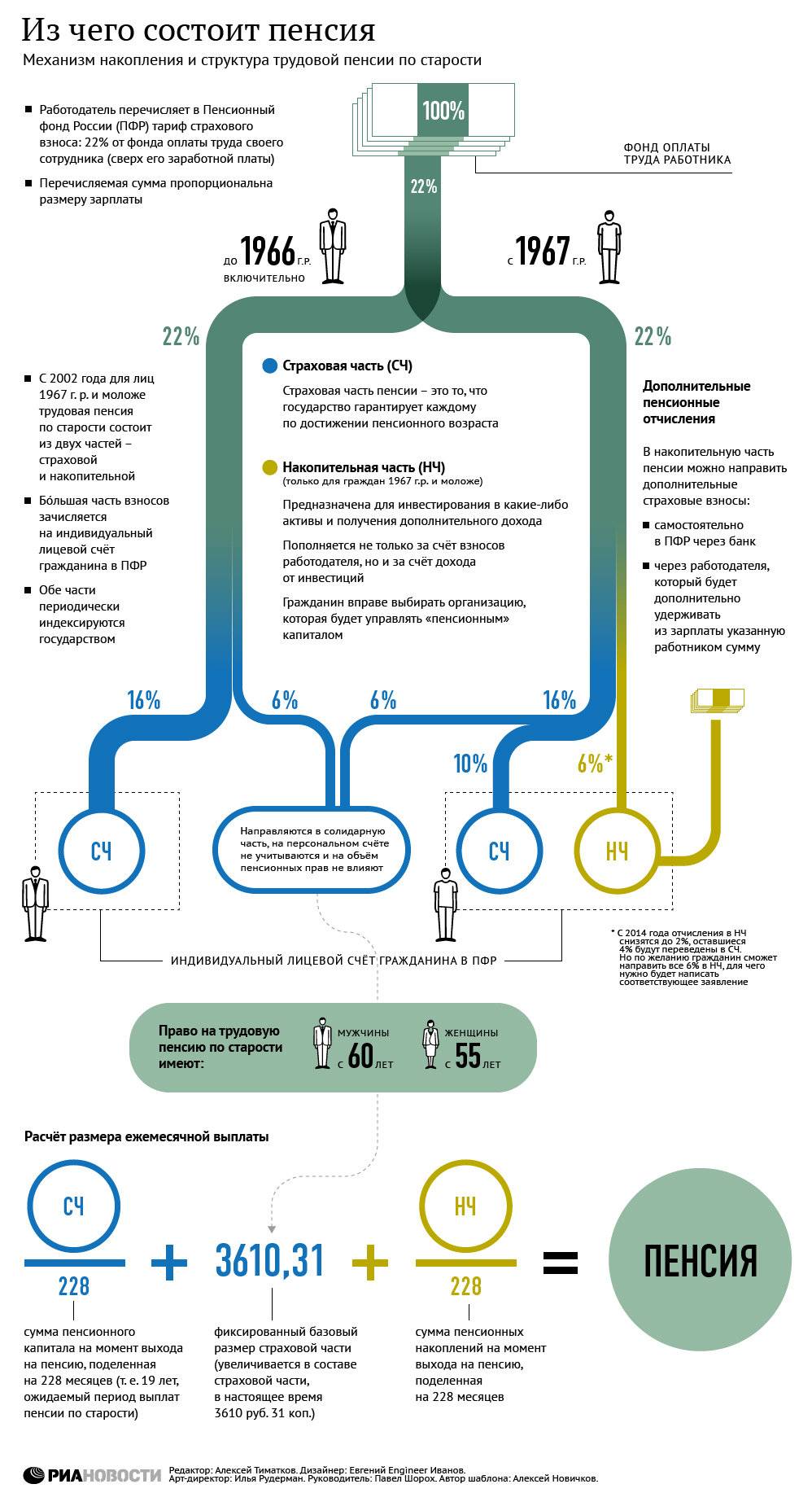 До 2014 года пенсия в процентном соотношении складывалась из следующих частей