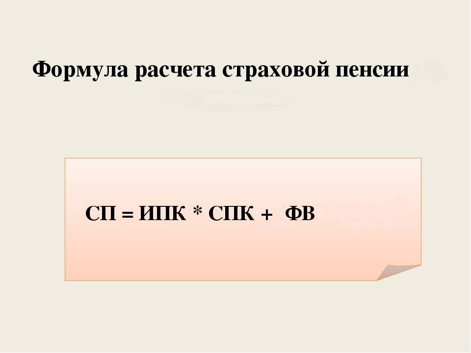 Для гражданина, у которого наработан определенный стаж трудовой деятельности, не зависимо от того, является ли он при этом инвалидом или нет, базовая формула расчета страховой пенсии не меняется. В ней также присутствует: выплата фиксированной суммы (ФВ) и складываемый из отчислений в период стажа пенсионный коэффициент в баллах (ИПК) помноженный на стоимость одного балла в рублевом эквиваленте (СПК).