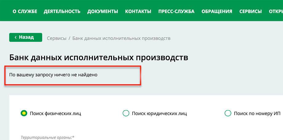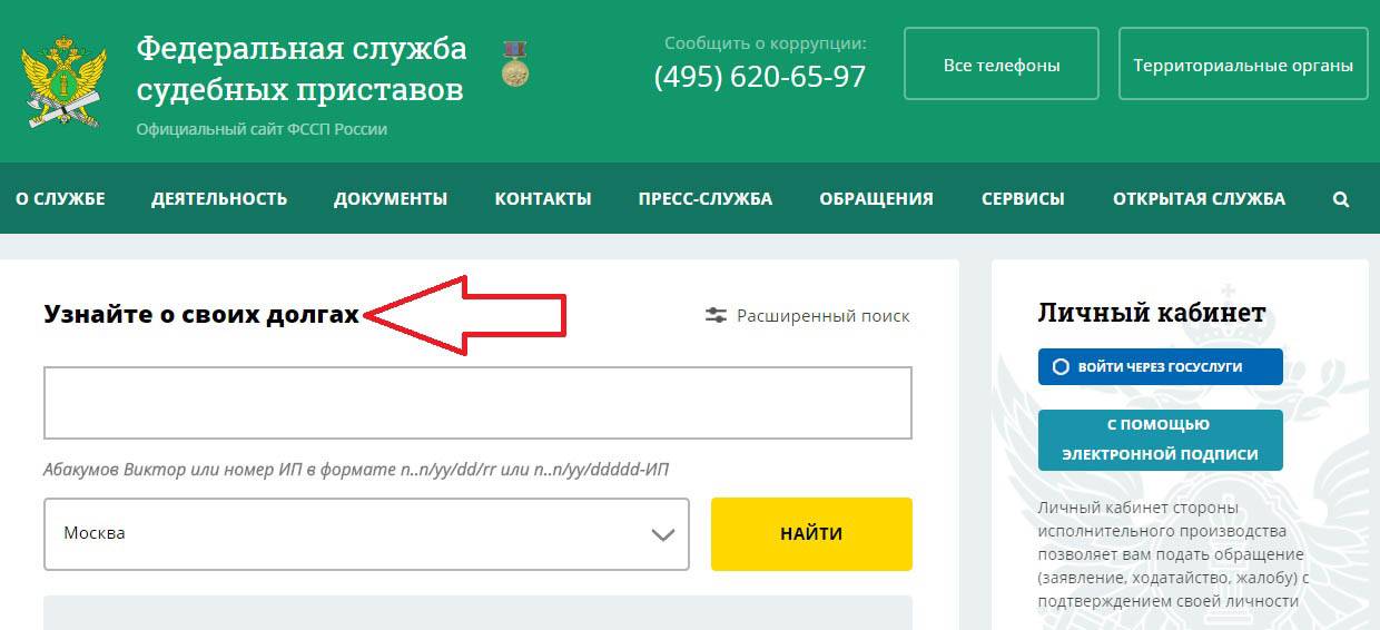 2На главной странице вы увидите форму «Узнайте о своих долгах».