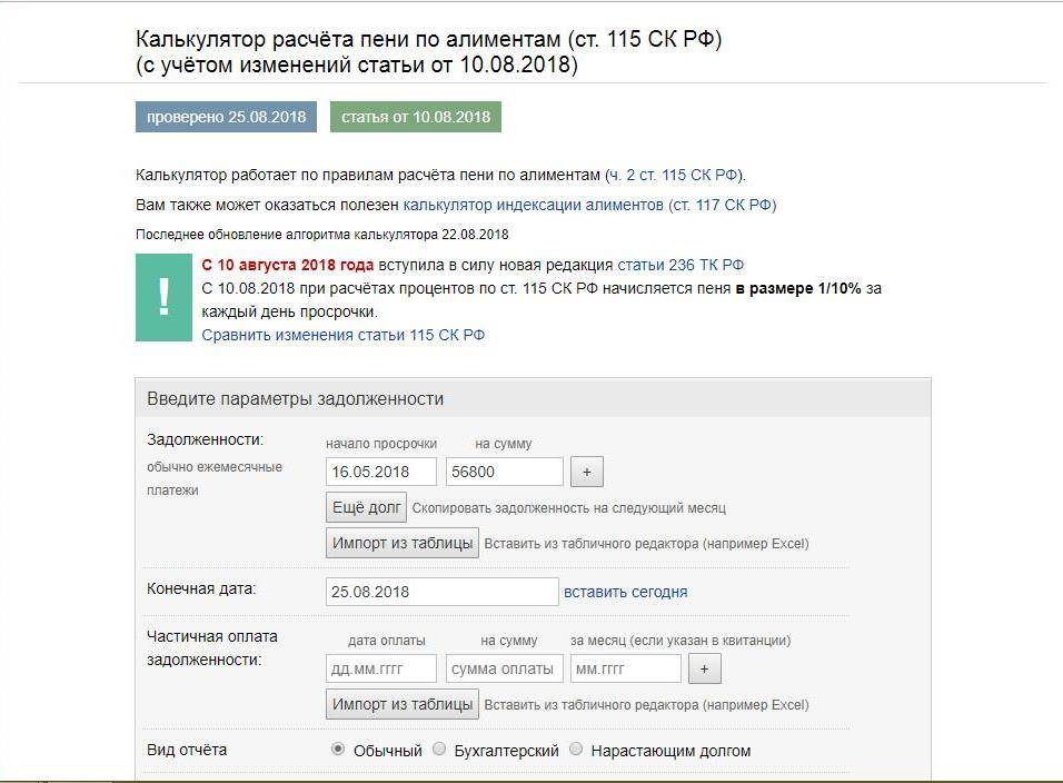 Внимание! Калькулятор расчета пени по алиментам (ст. 115 СК РФ)
