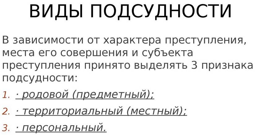 Виды подсудности в уголовном процессе