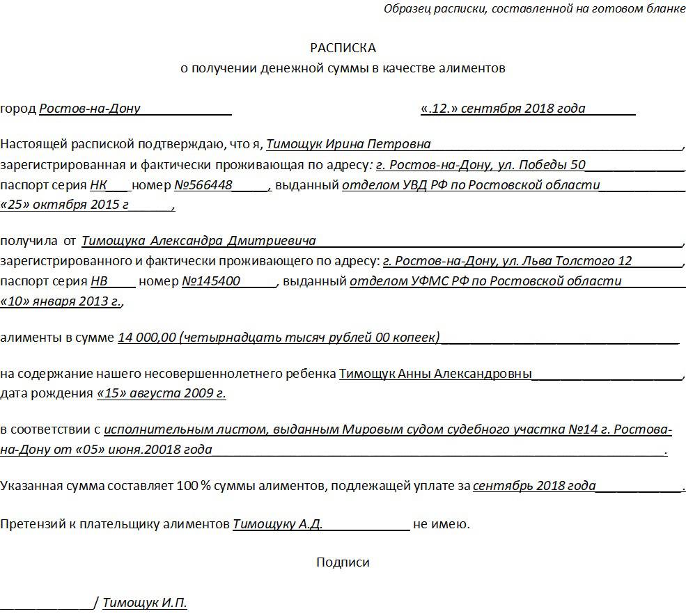 Расписка по алиментам