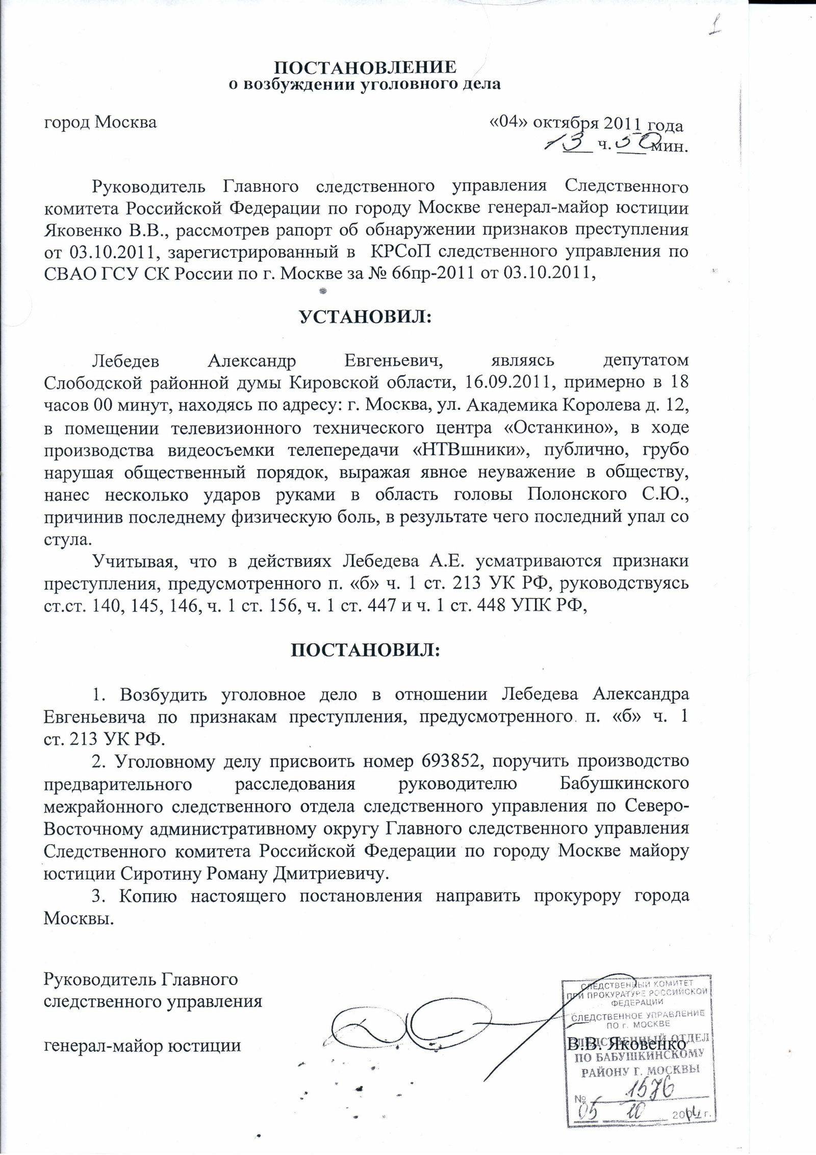 - Это отдельный акт процессуального характера о принятии решения относительно того, что в отношении данного правонарушения будет начато делопроизводство согласно законодательству РФ.