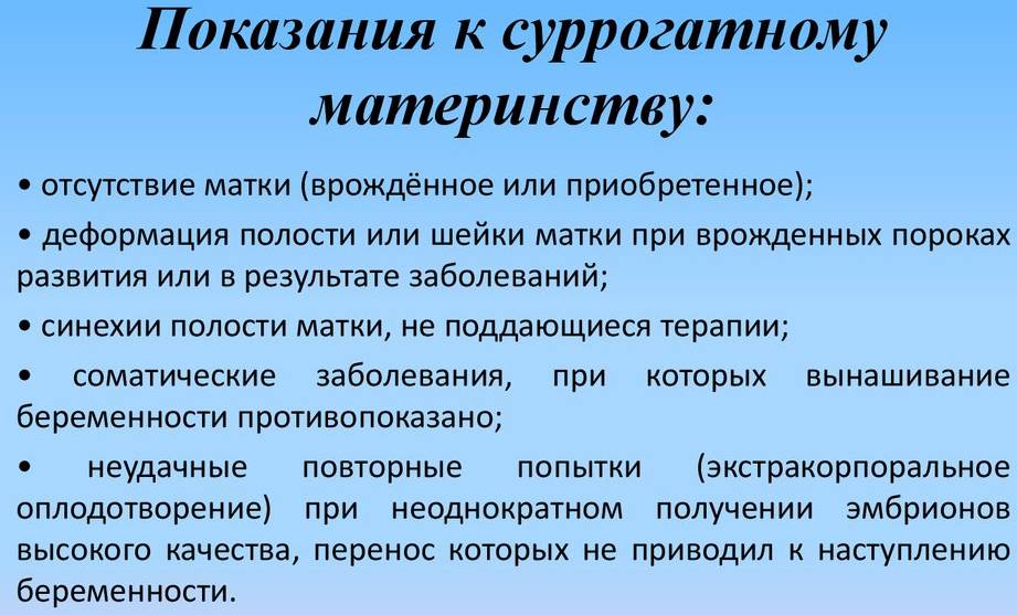 Показания к суррогатному материнству