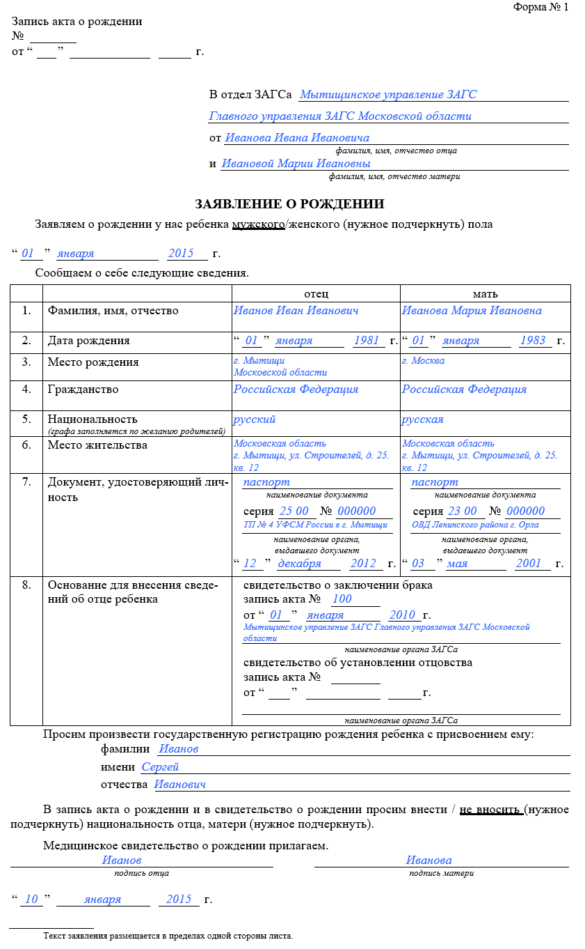 - Полные имена лиц, вступающих в брак.
