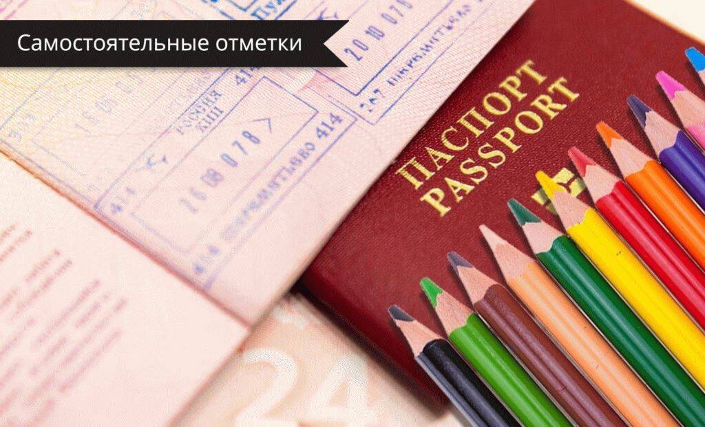 Самостоятельные отметки. Паспорт признается непригодным, если его владелец или какой-либо другой человек самостоятельно поставил в документе какие-либо посторонние пометки.