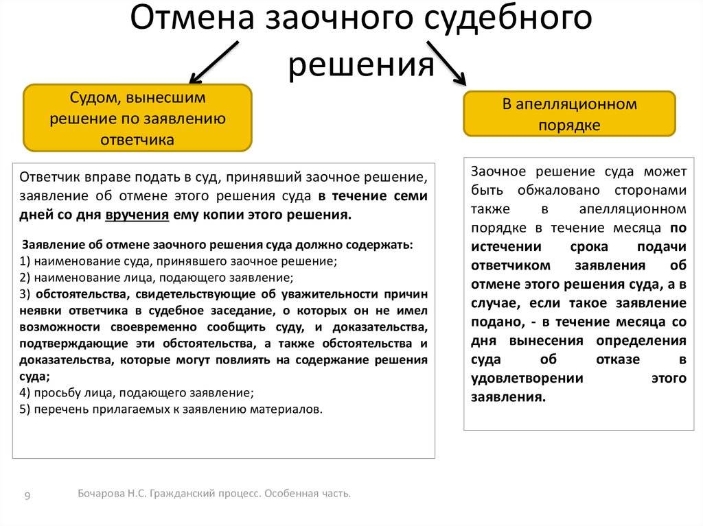 - отмена и обжалование заочного решения.