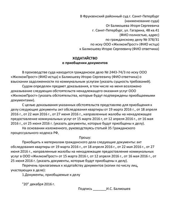 - просьба о приобщении документов к делу;