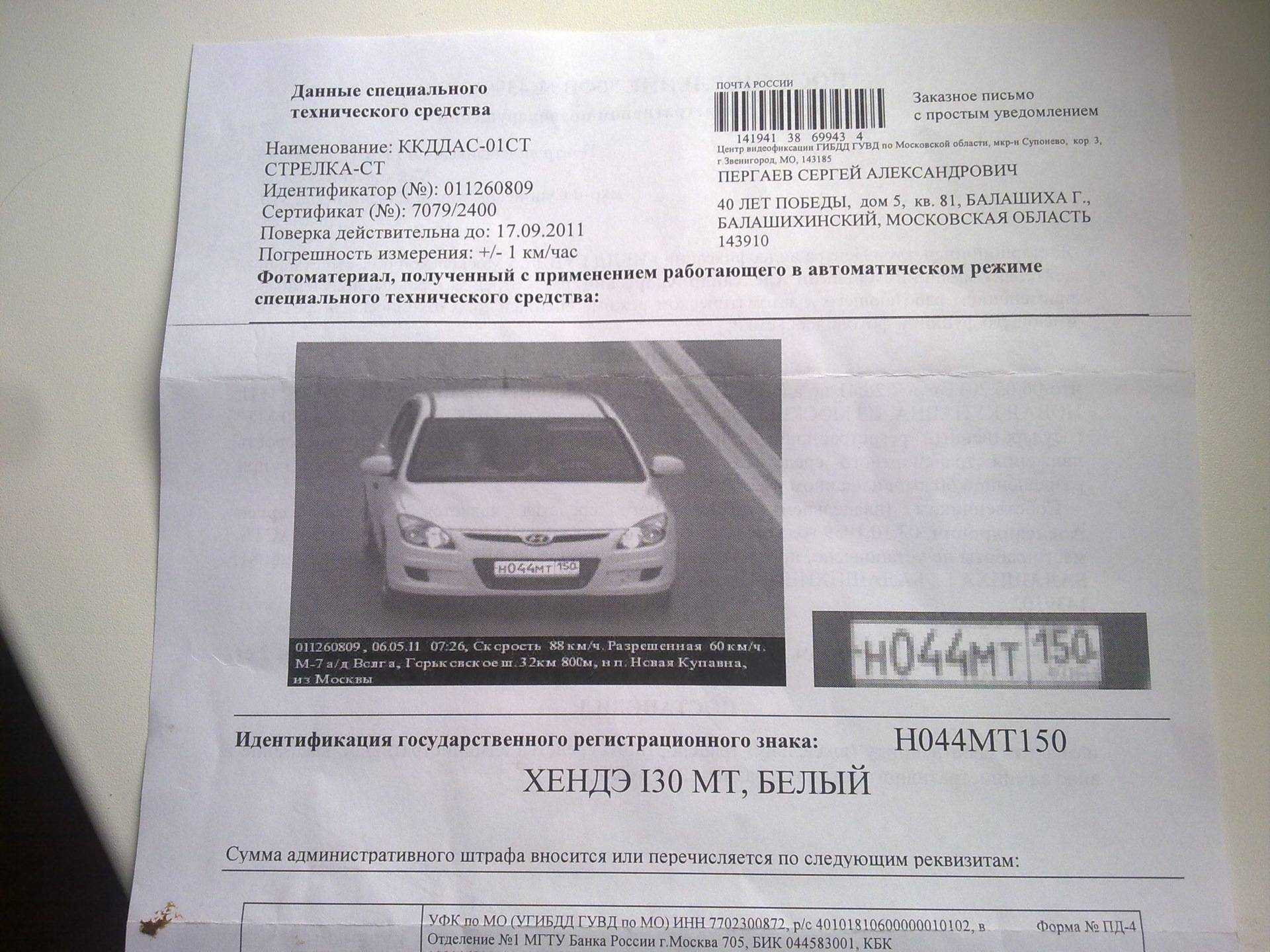 Как было сказано выше, любое административное правонарушение, выявленное камерой фотофиксации приходит водителю на почту в виде конверта с письмом, в котором содержатся следующие данные: