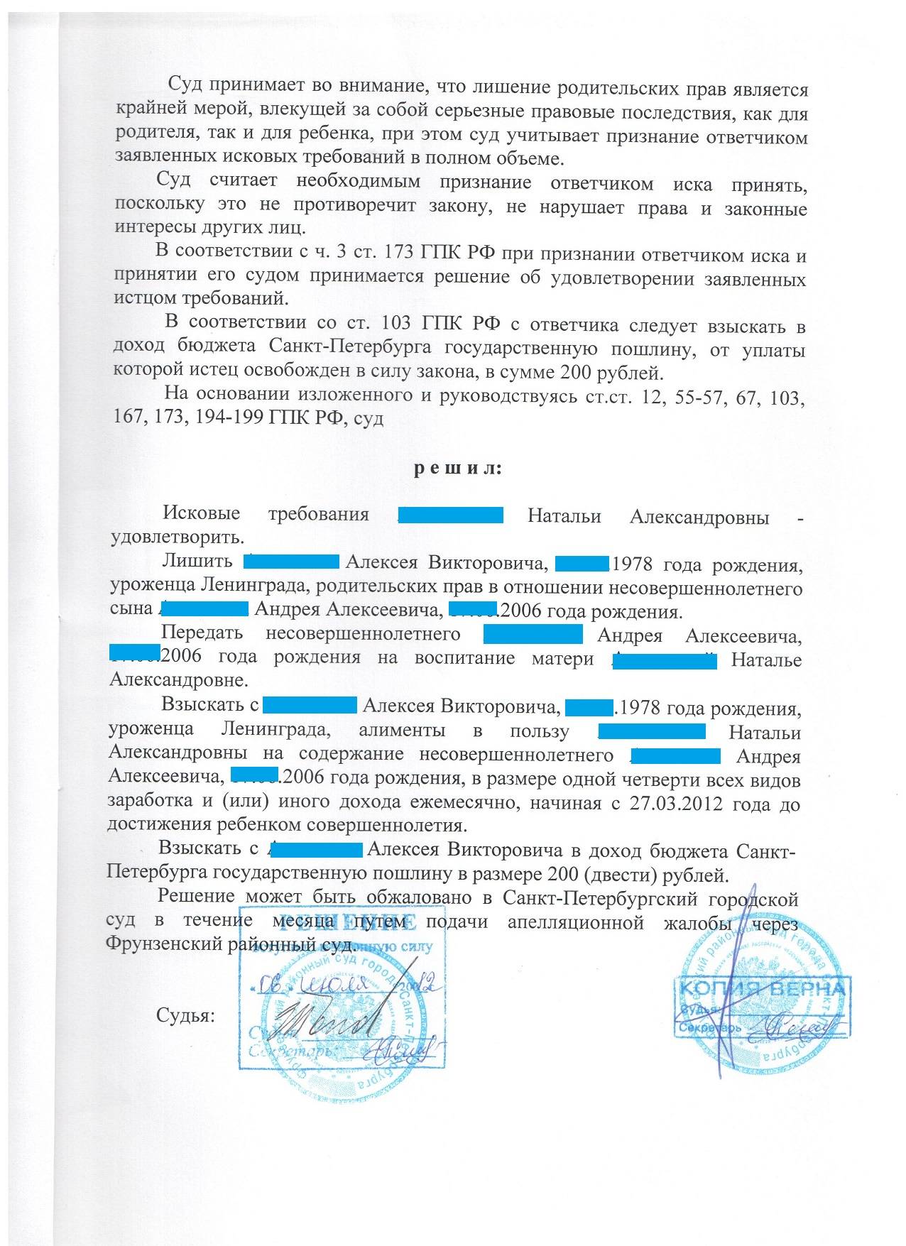 Скачать образец судебного решения по делу о лишении родительских прав .docx