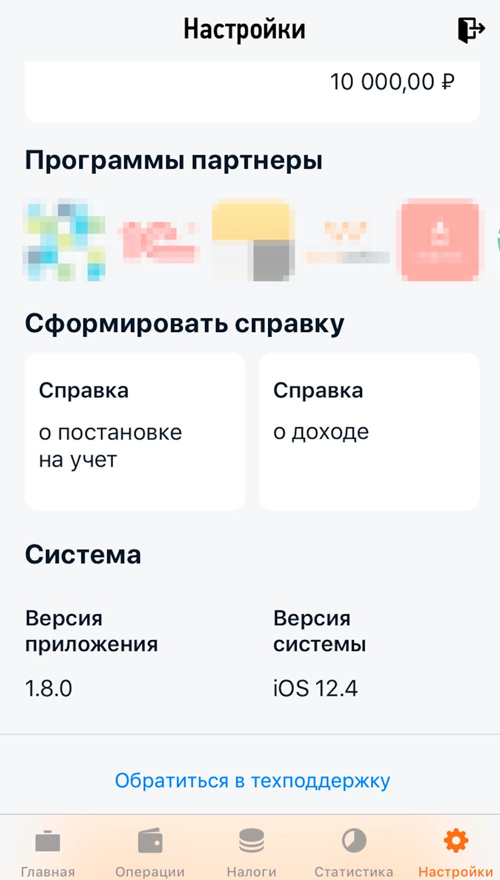 Справка о доходе из приложения формируется в разделе «Настройки»