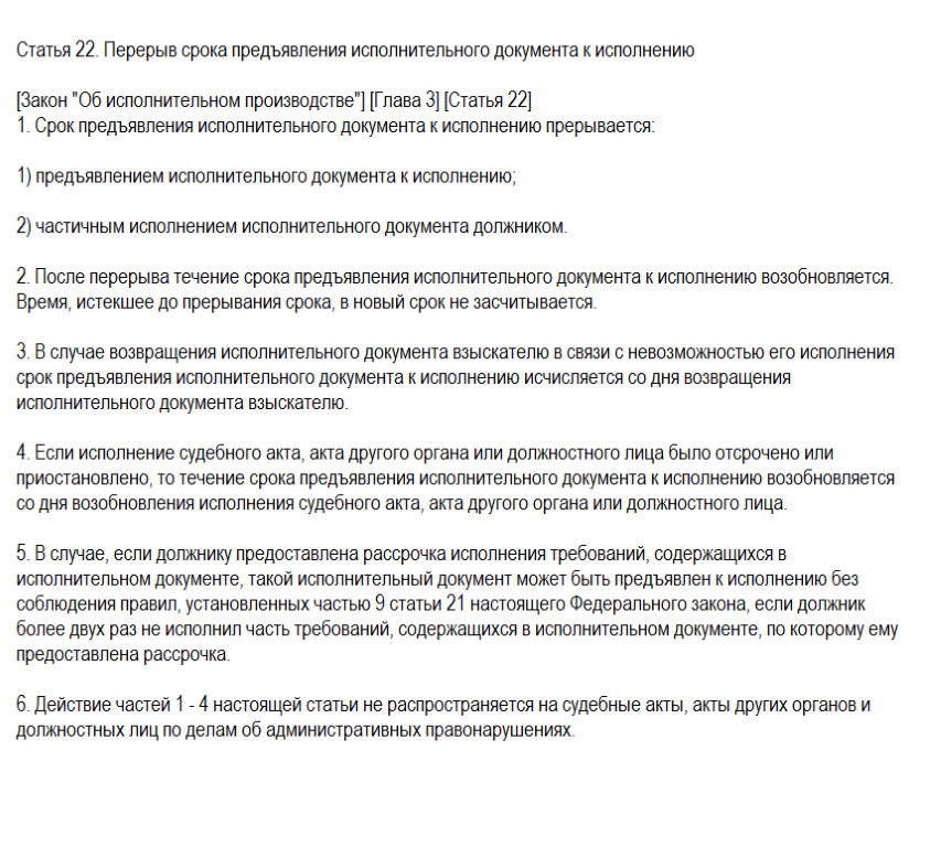 Помимо закрепления давности возникновения спорной ситуации, устанавливает закон (№229 ФЗ, действующий с 2 октября 2007 года) и время для совершения действий по исполнению судебного акта, восстановившего справедливость.