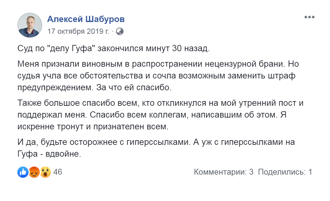 Алексей Шабуров предупреждает об опасности гиперссылок в своем фейсбуке