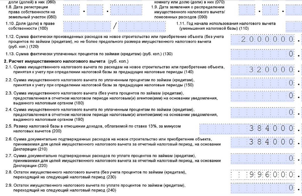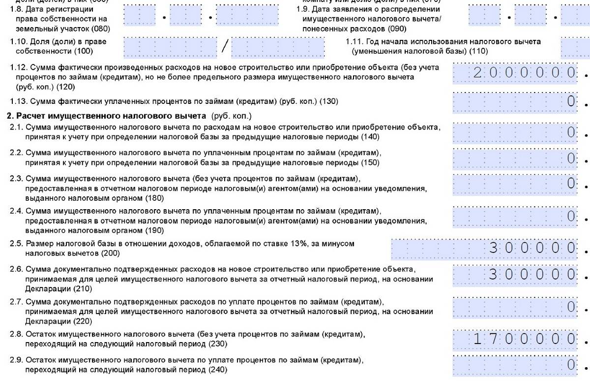 В течение следующих лет декларация заполняется аналогичным образом. Так продолжается до возврата вычета в полном размере.
