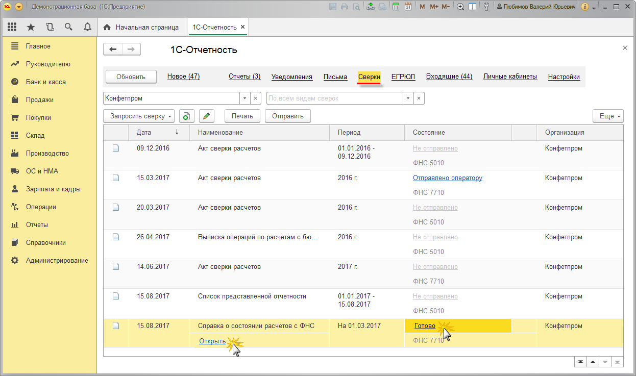 - Перейдите в раздел “Сверки”.