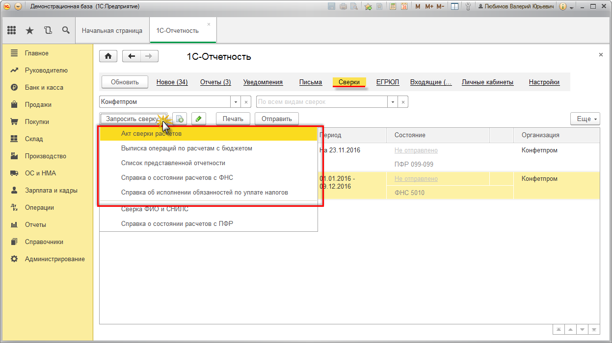 - Щелкните по кнопке “Запросить сверку”.