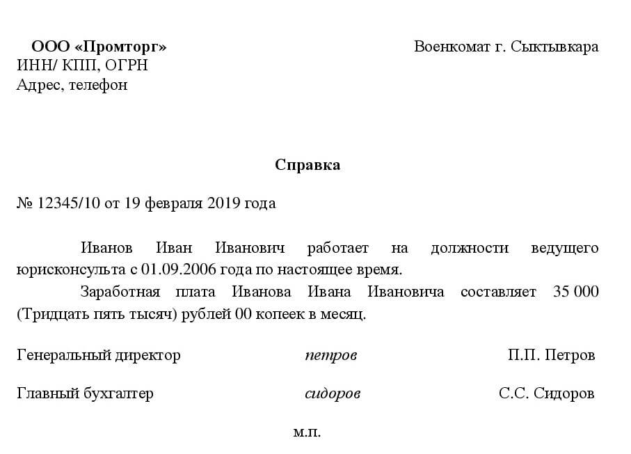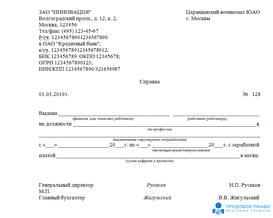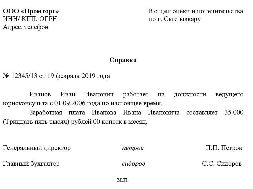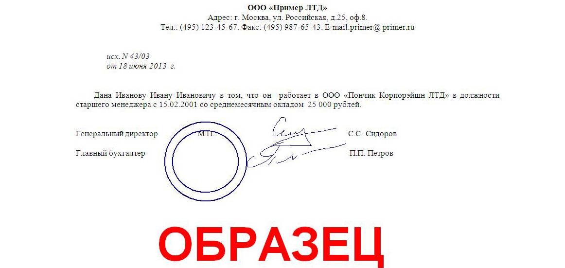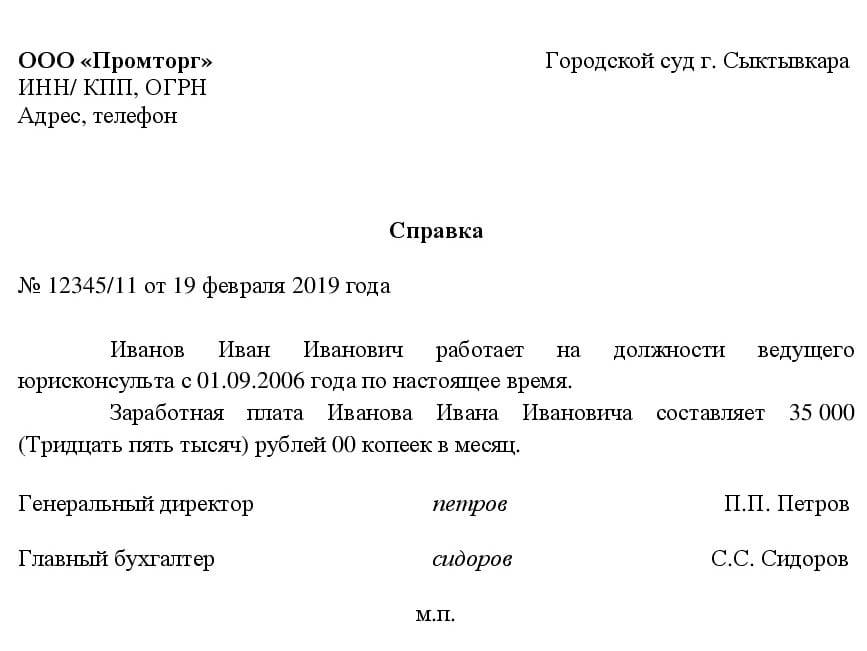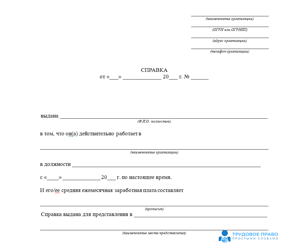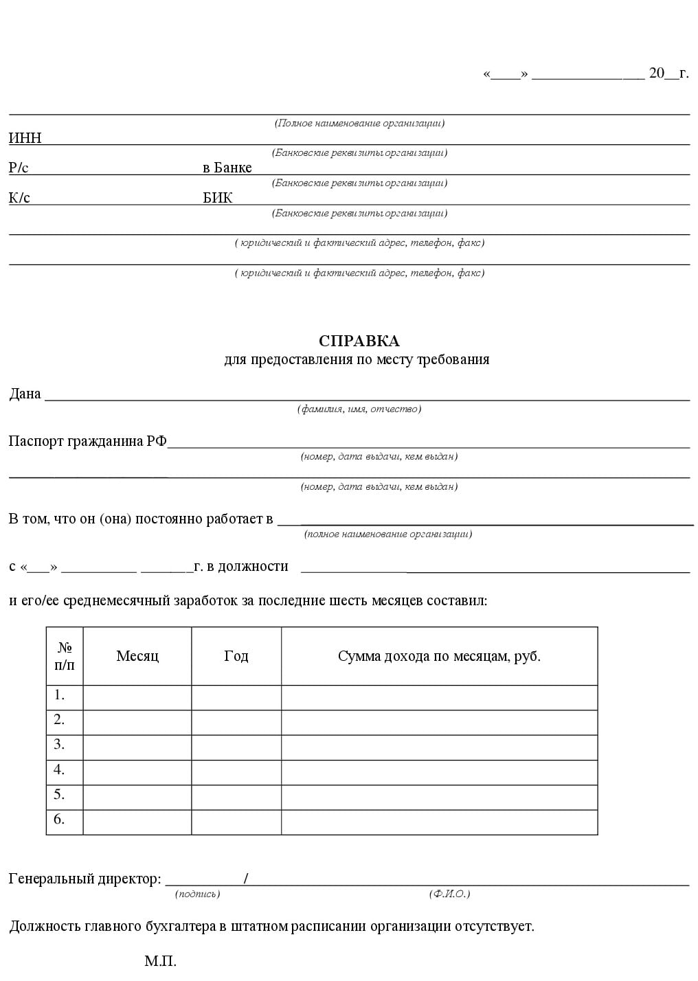 - перечень информации, которая должна быть в справке (уровень зарплаты, время работы в организации).