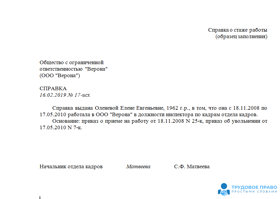 Не существует ни единого образца справки о стаже, ни единого способа ее получения. Обязательным элементом процедуры полагается письменное обращение. Однако практика небольших компаний показывает, что достаточно бывает и устной просьбы.