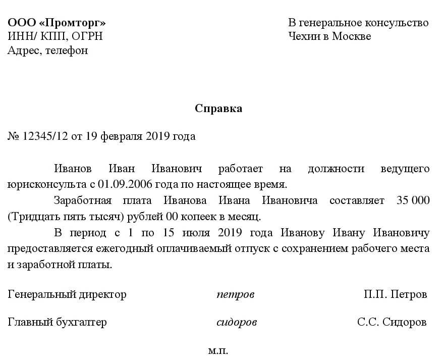Важно! В справке для визы обязательно должно быть подтверждение, что на период поездки за границу работнику предоставляется
