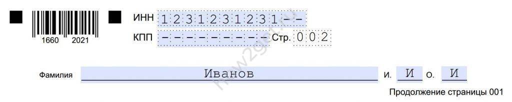 Дублируем ИНН в шапке второй страницы заявки на вычет. Затем снова вписываем Ф.И.О. заявителя (свои).