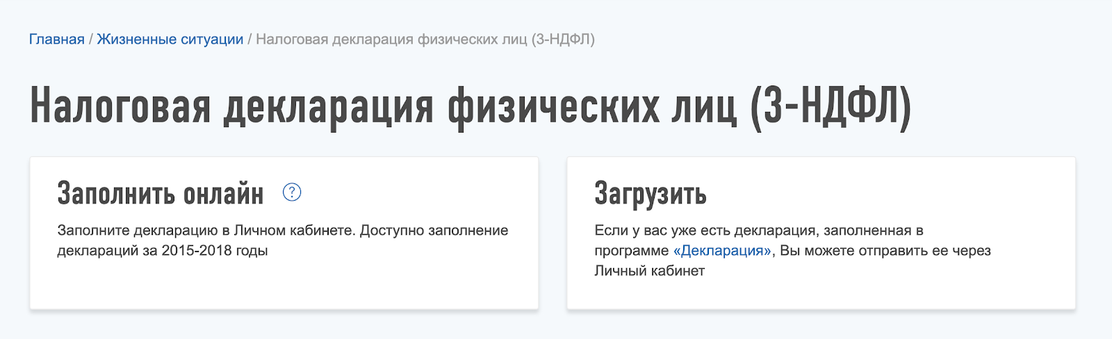 Заполнить все в личном кабинете. Декларацию можно заполнить на сайте nalog.ru — в личном кабинете налогоплательщика, без бланков и визитов в налоговую. Это самый простой и удобный способ. Декларация построена не в виде бланка, а в форме понятных вопросов с подсказками. На основании ответов формируется готовый файл, все само считается. Документы можно прикрепить в виде фотографий с телефона, а потом все это отправить в налоговую инспекцию через интернет. Потом удобно следить за статусом проверки и переписываться с инспектором — тоже в интернете.