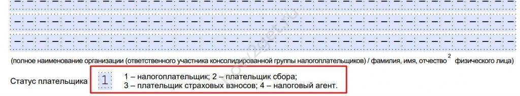 Статус плательщика выбираем из предложенных вариантов. Так как в ИФНС за получением вычета обращается сам плательщик налога, то выбираем код «1».
