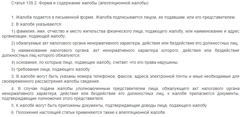Порядок подачи жалобы на решение налогового органа и требования к оформлению этого документа также прописаны в Налоговом кодексе. Срок подачи документа составляет 3 дня с момента получения требования от налоговой инспекции.