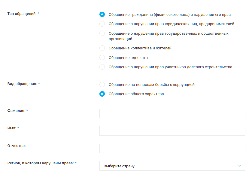 Обратиться с жалобой/сообщением можно по ряду причин: